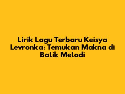 Halo, para pecinta musik! Siapa sih yang nggak kenal sama Keisya Levronka? Penyanyi muda berbakat ini selalu berhasil mencuri perhatian dengan lagu-lagunya yang easy listening dan liriknya yang relatable. Nah, buat kalian yang lagi nyari lirik lagu terbaru Keisya Levronka, pas banget nih nemuin artikel ini. Kita bakal kupas tuntas makna di balik setiap baitnya, biar kalian makin nyambung sama setiap karya yang dia lahirkan. Siap-siap ya, kita bakal menyelami dunia Keisya Levronka lewat lirik-lirik terbarunya!