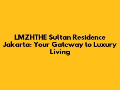 Hey there, real estate enthusiasts! Are you dreaming of a life of luxury and unparalleled comfort in the heart of Jakarta? Look no further than LMZHTHE Sultan Residence Jakarta, a prestigious residential development that redefines modern living. In this guide, we'll dive deep into everything you need to know about this remarkable property, from its prime location and stunning architectural design to its world-class amenities and investment potential. Get ready to explore the epitome of upscale living!