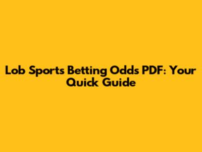 Lob Sports Betting Odds PDF: Your Quick Guide