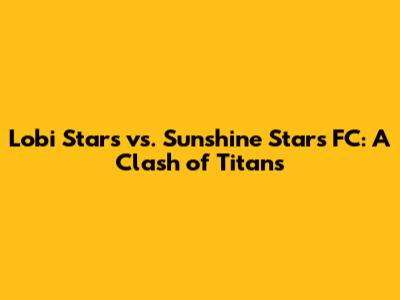 Hey sports fans! Get ready for an electrifying showdown as we dive deep into the thrilling world of Nigerian football! Today, we're putting the spotlight on a match that's sure to have you on the edge of your seats: Lobi Stars versus Sunshine Stars FC. This isn't just any game, guys; it's a clash of titans, a battle for bragging rights, and a testament to the passion that fuels Nigerian football. We will explore everything, from their past encounters to their current form, to give you the ultimate lowdown. So, buckle up, because we're about to embark on an exciting journey into the heart of this epic matchup.