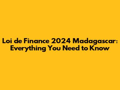 Loi De Finance 2024 Madagascar: Everything You Need To Know