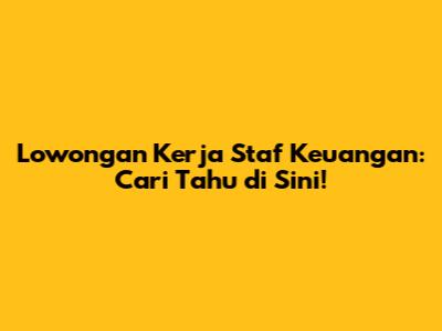 Lowongan Kerja Staf Keuangan: Cari Tahu Di Sini!