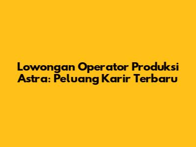 Lowongan Operator Produksi Astra: Peluang Karir Terbaru
