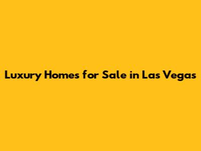 Luxury Homes For Sale In Las Vegas