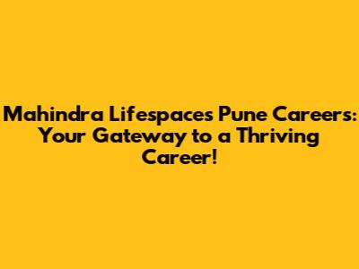 Mahindra Lifespaces Pune Careers: Your Dream Job Awaits!