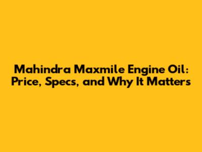 Mahindra Maxmile Engine Oil: Price, Specs, And Why It Matters