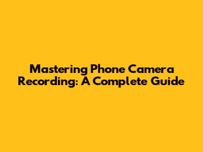 Mastering Phone Camera Recording: A Complete Guide