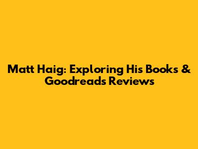 Matt Haig: Exploring His Books & Goodreads Reviews