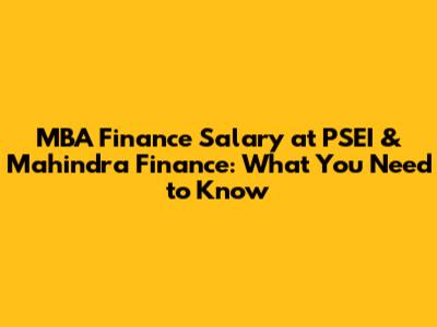 MBA Finance Salary At PSEI & Mahindra Finance
