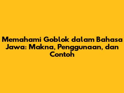 Goblok dalam Bahasa Jawa – Pernahkah kalian mendengar kata “goblok” dalam percakapan sehari-hari atau dalam media sosial? Mungkin kalian bertanya-tanya, apa sih sebenarnya arti dari kata tersebut, terutama jika diucapkan dalam bahasa Jawa? Nah, artikel ini akan membahas secara mendalam mengenai kata “goblok” dalam konteks bahasa Jawa. Kita akan mengupas tuntas mulai dari makna dasarnya, penggunaan yang tepat, hingga contoh-contoh dalam kalimat. Jadi, bagi kalian yang penasaran, yuk simak ulasan lengkapnya!