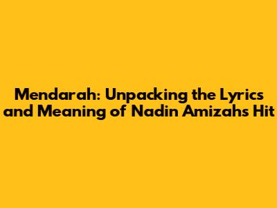 Unveiling the Lyrics: A Closer Look at "Mendarah"