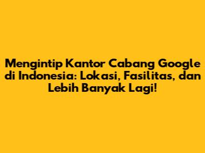 Hai, guys! Kalian pasti penasaran kan, di mana sih kantor cabang Google di Indonesia itu berada? Gimana suasana kerjanya, fasilitasnya, dan apa saja yang menarik di sana? Nah, artikel ini bakal mengupas tuntas semua hal itu. Jadi, siap-siap buat diajak keliling kantor Google Indonesia dan mengetahui lebih jauh tentang raksasa teknologi ini di tanah air.