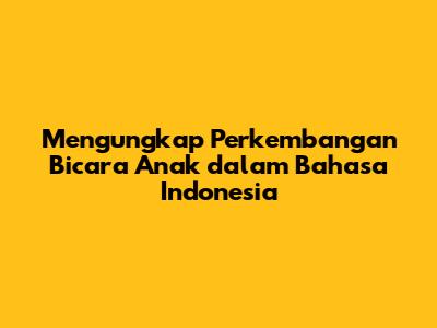Mengungkap Perkembangan Bicara Anak Dalam Bahasa Indonesia