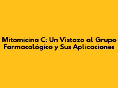 La mitomicina C es un medicamento potente en el tratamiento del cáncer, que pertenece al grupo de los antibióticos antineoplásicos. Aunque puede causar efectos secundarios, su uso puede marcar una gran diferencia en la vida de los pacientes. Con el conocimiento adecuado, la supervisión médica y el cuidado apropiado, los pacientes pueden enfrentar el tratamiento con mitomicina C con confianza. ¡Recuerden siempre consultar a su médico para obtener información y orientación personalizada! ¡Cuídense mucho! Si tienen alguna pregunta, no duden en consultar a su médico o farmacéutico. La información en este artículo tiene fines informativos y no sustituye el consejo médico profesional. ¡Salud!