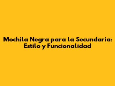 Mochila Negra Para La Secundaria: Estilo Y Funcionalidad