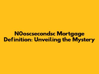 N0oscsecondsc Mortgage Explained: Your Guide