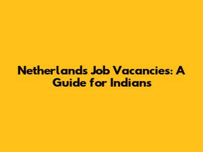 Netherlands Job Vacancies: A Guide For Indians