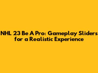 NHL 23 Be A Pro: Gameplay Sliders For Realistic Experience