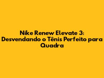 Nike Renew Elevate 3: Domine As Quadras Com Conforto E Estilo