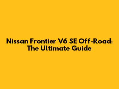 Nissan Frontier V6 SE Off-Road: The Ultimate Guide
