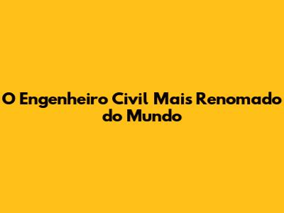 O Engenheiro Civil Mais Renomado Do Mundo