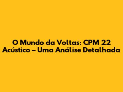 Espero que tenham gostado dessa análise detalhada de "O Mundo da Voltas" acústico. Se tiverem alguma dúvida ou sugestão, deixem seus comentários abaixo. E não se esqueçam de compartilhar esse artigo com seus amigos fãs de CPM 22. Até a próxima!