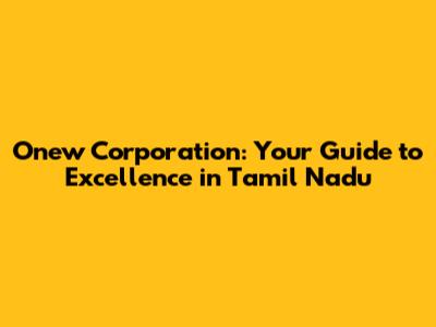 Onew Corporation: Your Guide To Excellence In Tamil Nadu