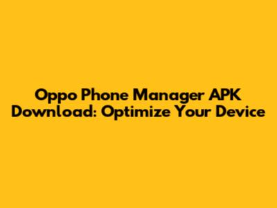 Oppo Phone Manager APK Download: Optimize Your Device