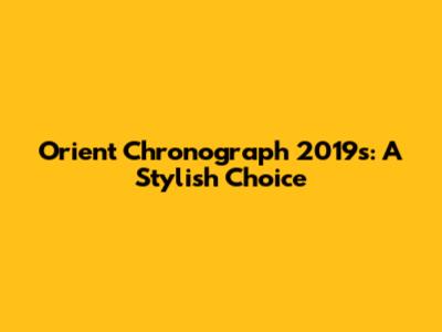 Orient Chronograph 2019s: A Stylish Choice
