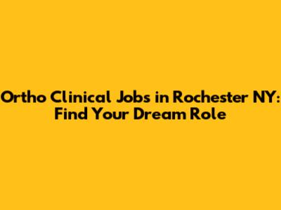 Ortho Clinical Jobs In Rochester NY: Find Your Dream Role