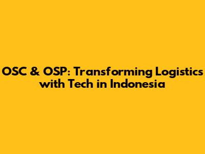 OSC & OSP: Transforming Logistics With Tech In Indonesia