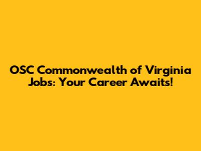 OSC Commonwealth VA Jobs: Your Career Awaits!