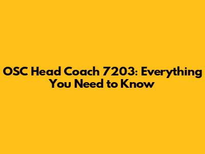 OSC Head Coach 7203: Everything You Need To Know