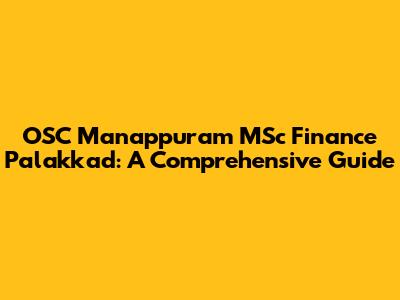 Hey guys! Are you looking for a fantastic opportunity to boost your career in finance? Specifically, are you eyeing a Master of Science (MSc) in Finance program? If so, you've landed in the right place! We're diving deep into the world of OSC Manappuram and its MSc Finance program in Palakkad. This article is your ultimate guide, covering everything you need to know, from the program's specifics to why it's a smart move for your future. Let's get started!