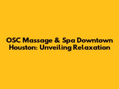OSC Massage & Spa: Your Downtown Houston Oasis