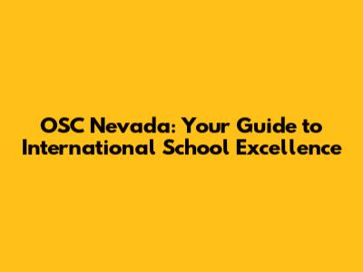 OSC Nevada: Your Guide To International School Excellence