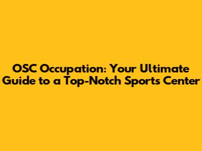 OSC Occupation: Your Ultimate Guide To A Top-Notch Sports Center