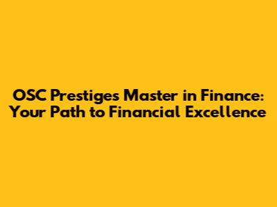 OSC Prestige's Master In Finance: Your Path To Financial Excellence