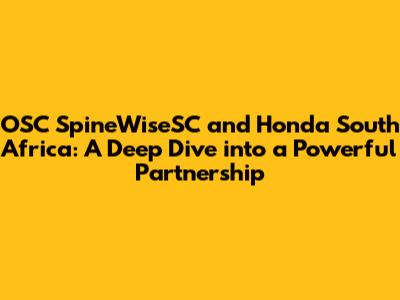 Let's explore the dynamic collaboration between OSC SpineWiseSC and Honda in South Africa. This partnership brings together cutting-edge spinal health solutions with the reliability and innovation synonymous with the Honda brand. Guys, this isn't just about two names coming together; it's about creating something truly impactful for the South African community. We're diving deep into what makes this partnership tick, how it benefits the local population, and what the future holds for this exciting venture. Think of it as a behind-the-scenes look at how healthcare and automotive excellence can merge to drive positive change.