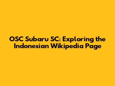OSC Subaru SC: Exploring The Indonesian Wikipedia Page