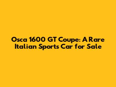 Hey guys! Ever heard of an Osca 1600 GT Coupe? Probably not, unless you're a serious classic car aficionado. But trust me, this is one seriously cool and rare Italian sports car that's definitely worth knowing about. If you're on the hunt for a unique and thrilling driving experience, or maybe you're looking to expand your collection with something truly special, then buckle up! We're diving deep into the world of the Osca 1600 GT Coupe, exploring its history, what makes it so special, and where you might actually find one for sale. So, let's get started!