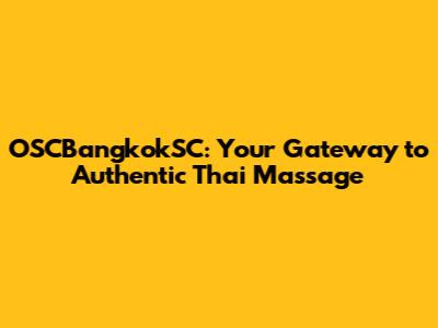 OSCBangkokSC: Your Gateway To Authentic Thai Massage
