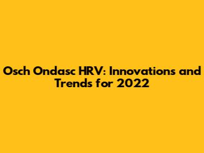Osch Ondasc HRV: Innovations And Trends For 2022