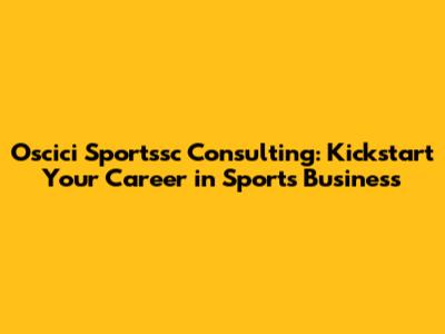 Oscici Sportssc Consulting: Career Opportunities