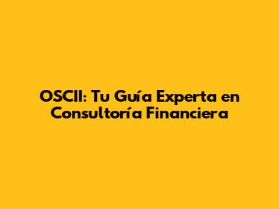 OSCII: Tu Guía Experta En Consultoría Financiera