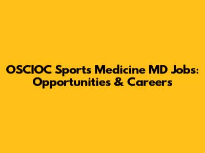 OSCIOC Sports Medicine MD Jobs: Opportunities & Careers