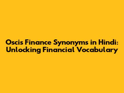 Oscis Finance Synonyms In Hindi: A Comprehensive Guide