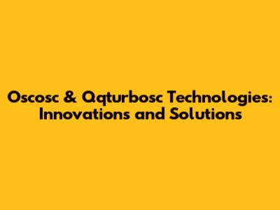 Oscosc & Qqturbosc Technologies: Innovations And Solutions