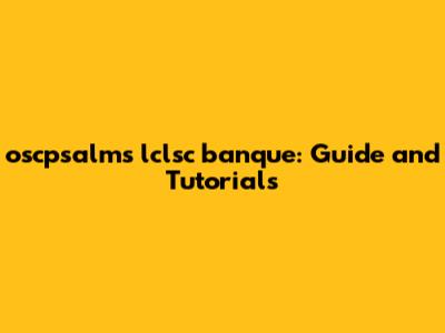 Oscpsalms Lclsc Banque: Guide And Tutorials