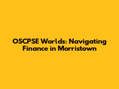 OSCPSE Worlds: Navigating Finance In Morristown